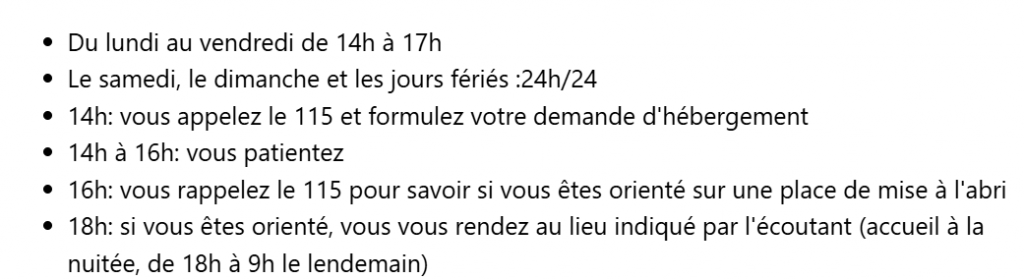 115 HEBERGEMENT URGENCE
