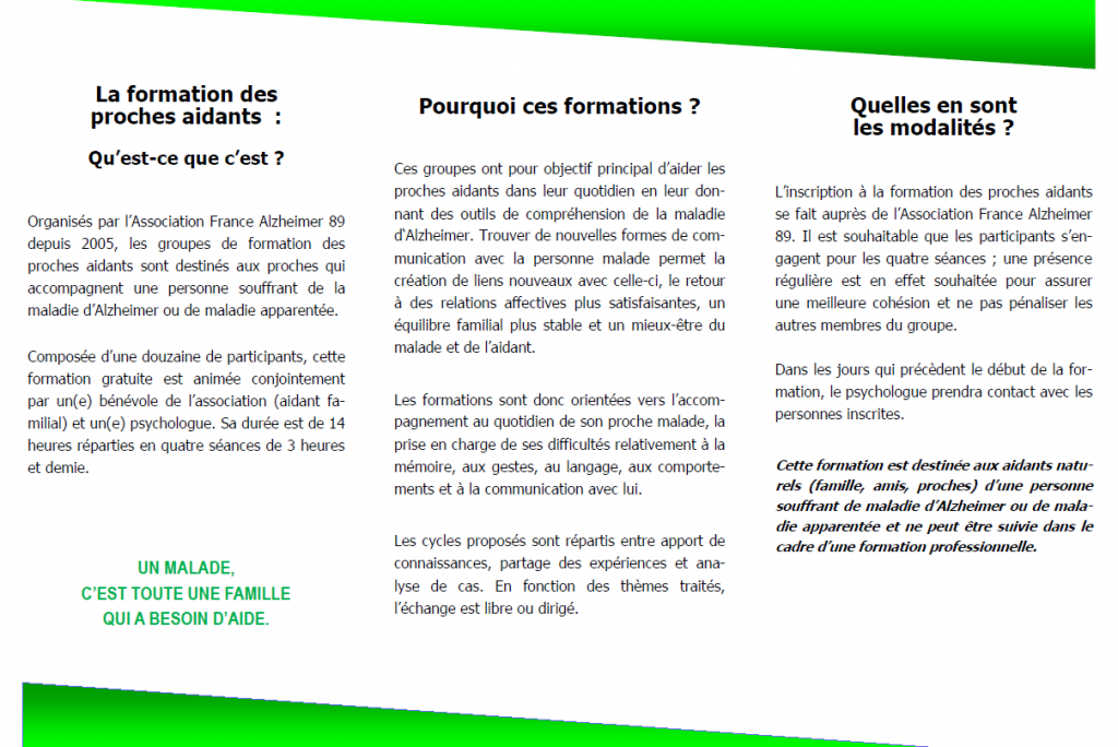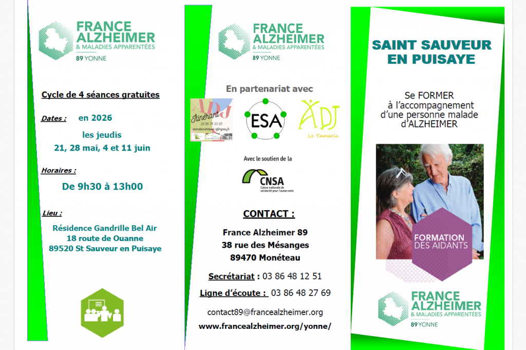 Formation FRANCE ALZHEIMER aidants St SAUVEUR EN PUISAYE