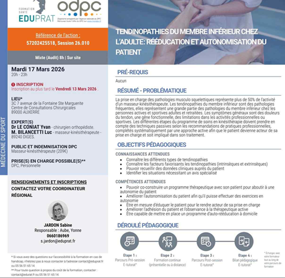 Formation Tendinopathies membre inférieur le 17 mars 2026